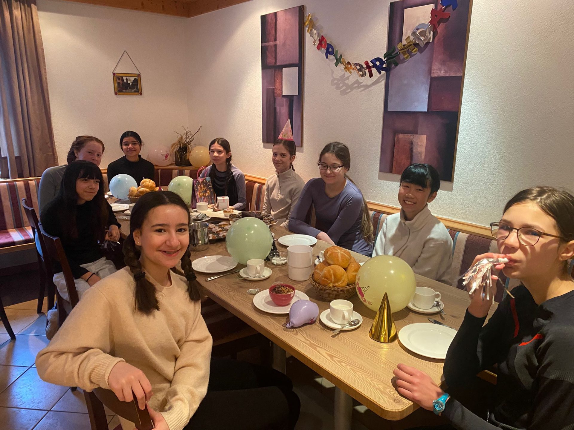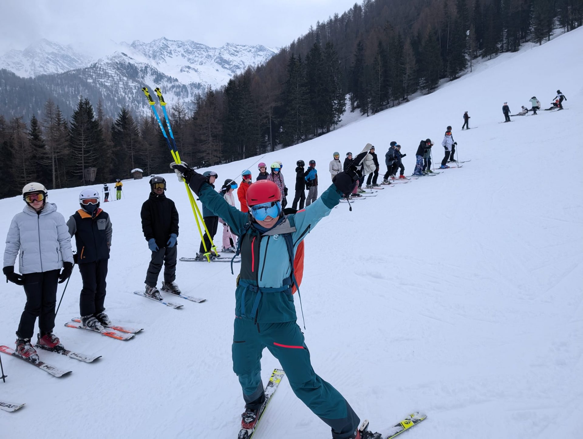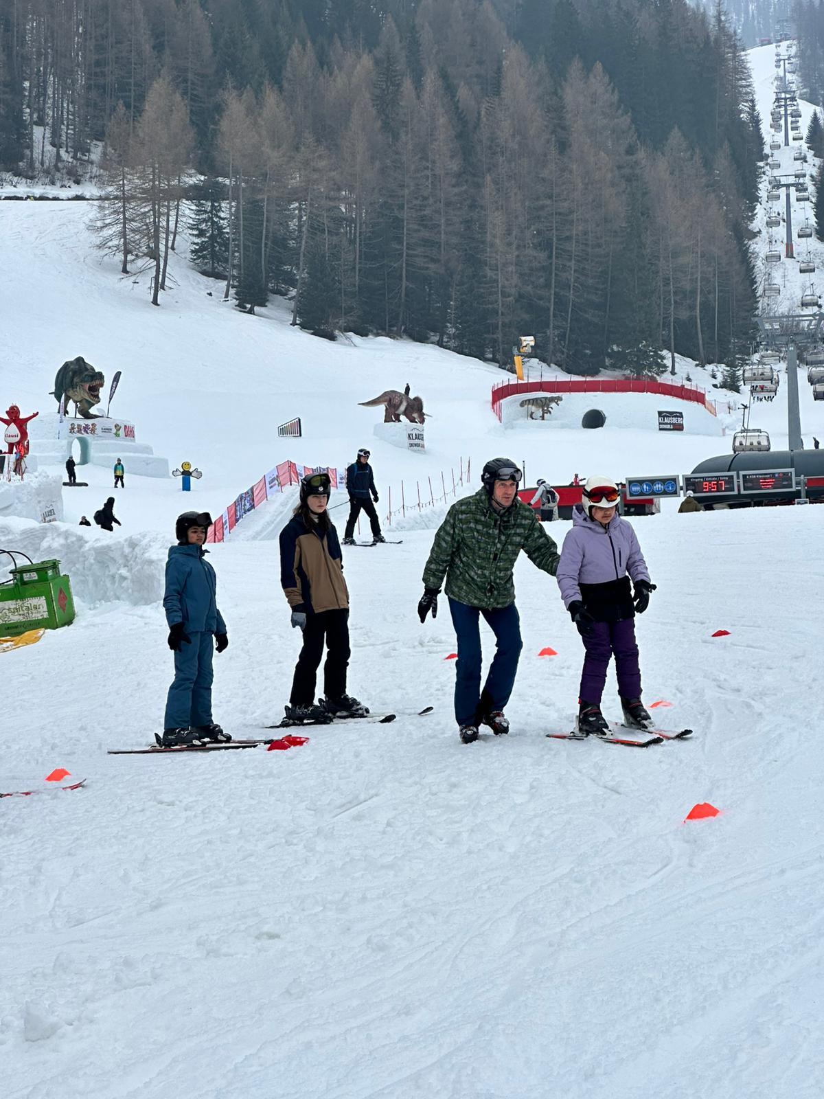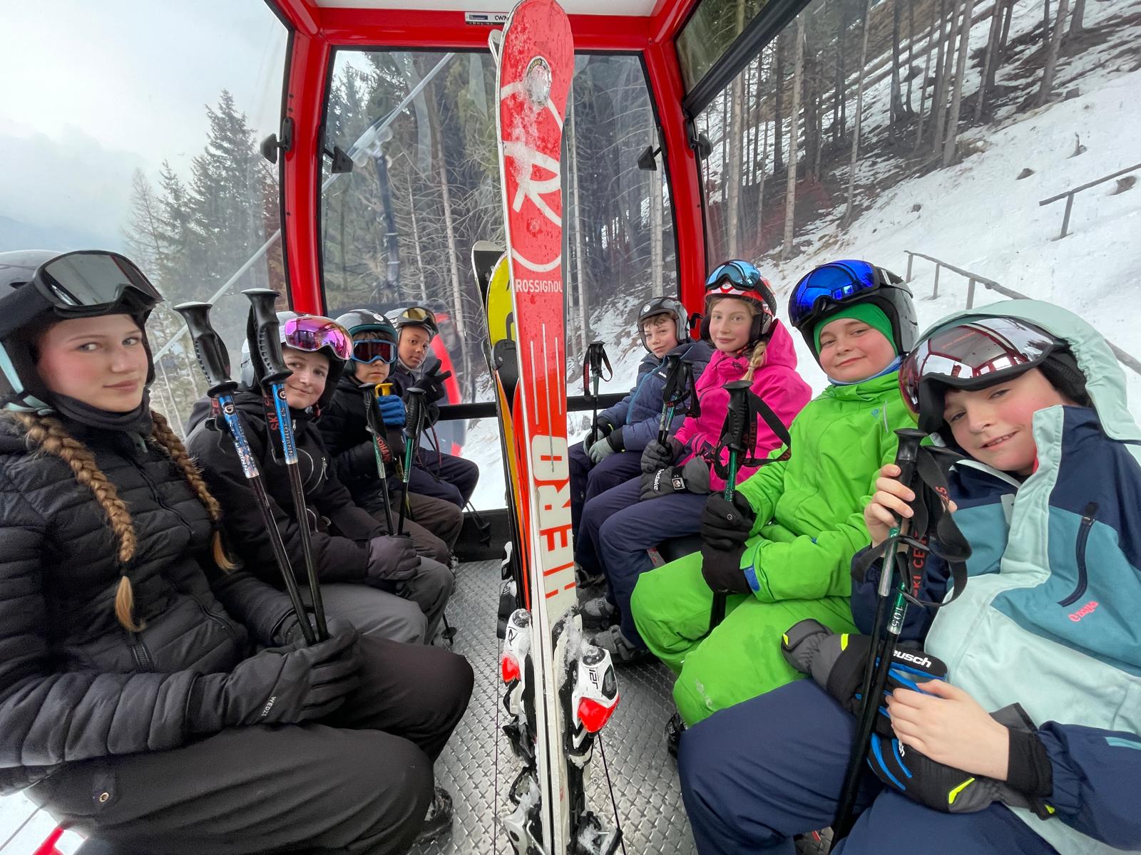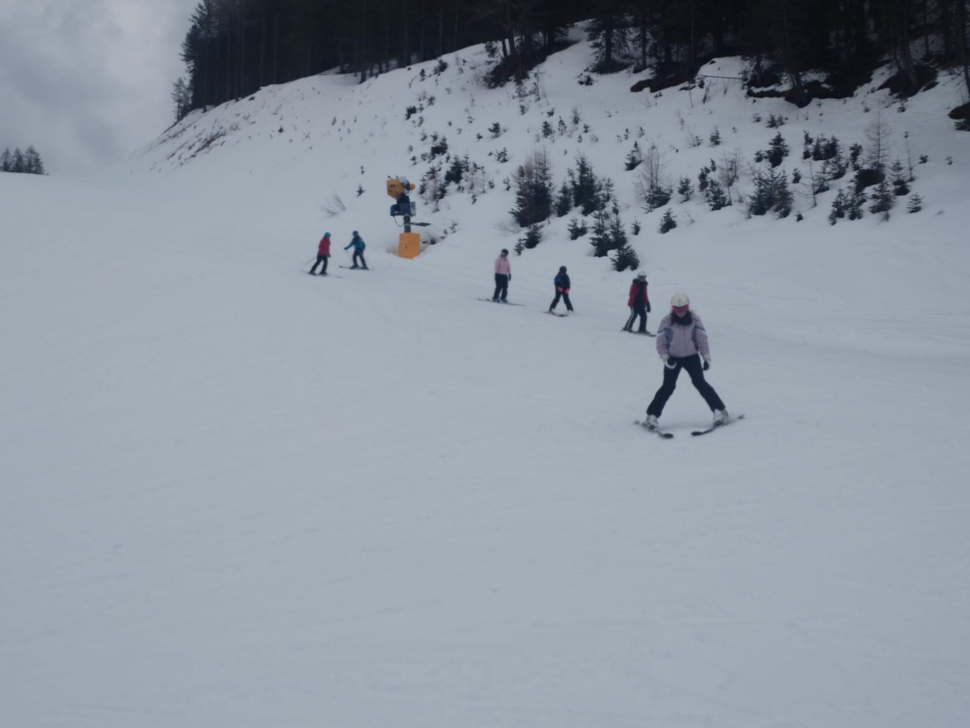 Heute war insgesamt ein guter Tag mit schönen Fortschritten beim Skifahren, da wir uns alle verbessert haben. Das Wetter war leider nicht so berauschend, aber wir haben das Beste daraus gemacht. Einige Gruppen konnten schon ganz hoch auf den Klausberg fahren, obwohl es etwas nebelig war, und auf der roten Piste fahren, andere übten noch auf dem Ziehweg oder auf der blauen Piste. Zum Mittagessen gab es Pommes mit Käsesticks, es hat relativ bescheiden geschmeckt. Danach fuhren wir weiter Ski, bevor es mit der Gondel ins Tal ging und in einen sehr vollen Bus. Abends nach dem Essen war wieder Zimmerkontrolle angesagt – aufräumen und saubermachen für alle Zimmer.