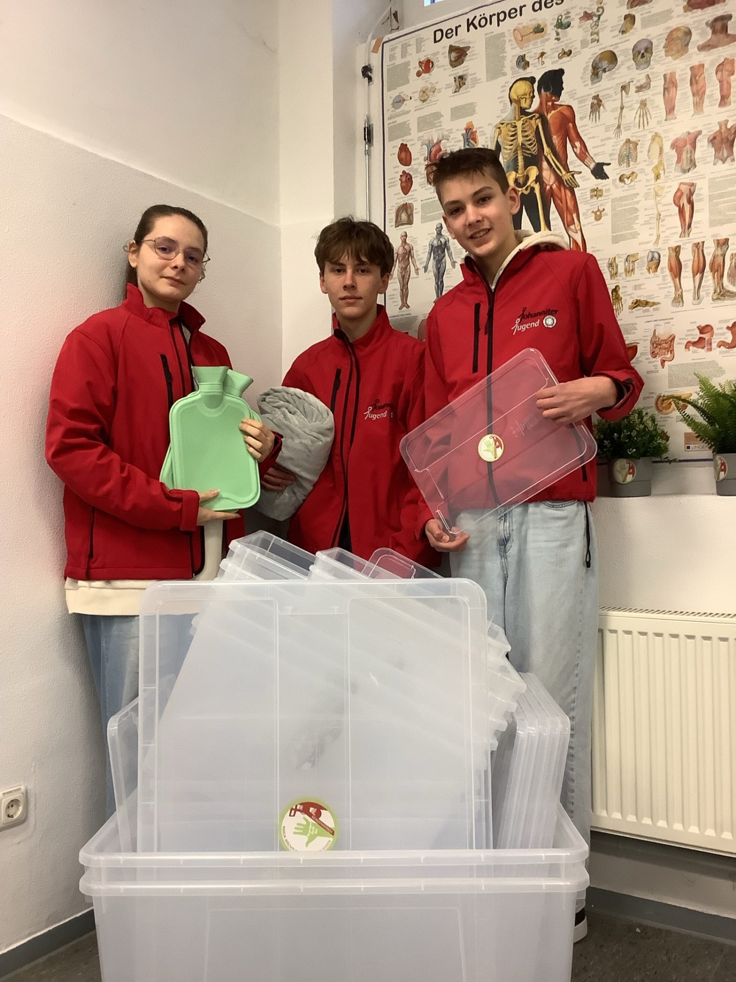 Der Schulsanitätsdienst freut sich über neue Ausstattung. Dank der Unterstützung des Fördervereins konnten wir neue Aufbewahrungskästen für unsere Materialien anschaffen. So ist jetzt alles ordentlich und schnell griffbereit, wenn Hilfe gebraucht wird. Außerdem sorgt ein neuer Wasserkocher im Saniraum dafür, dass wir bei Einsätzen oder an kalten Tagen schnell etwas Warmes zubereiten können. Mit den neuen Fließdecken können es sich die kleinen Patienten nun auf der Liege gemütlich machen. Durch ein paar Bilder und Pflanzen wirkt der Raum nun freundlicher als vorher.