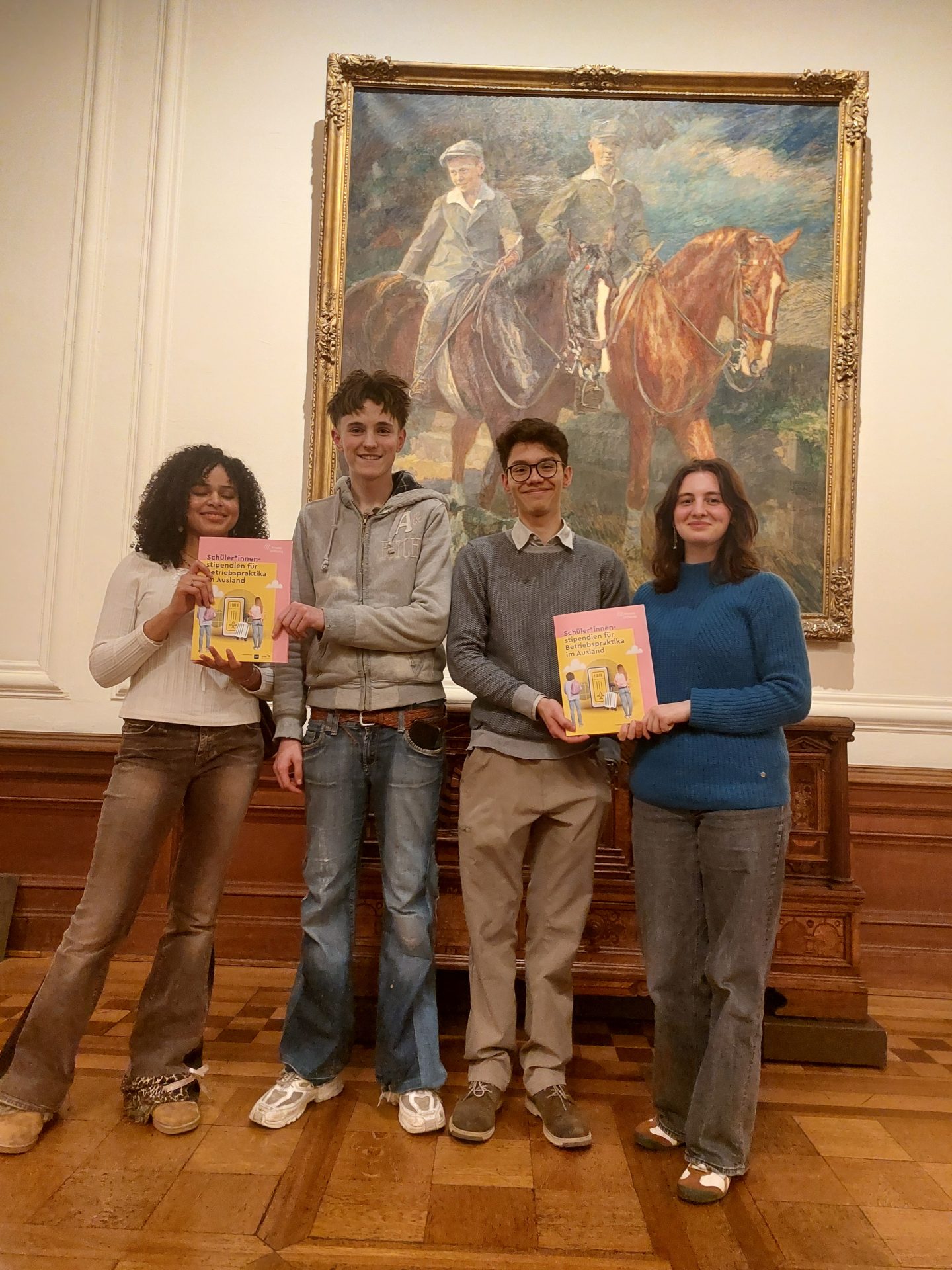 Voller Stolz schauen Esther, Luis, Malte und Svenja in die Kamera und halten ihre Praktikumsmappen in die Höhe, und der besondere Ort der Aufnahme – der Eingangsbereich der Villa Hügel – könnte nicht passender sein. Zusammen mit 31 anderen Essener Schülerinnen und Schülern sind die vier als diesjährige Stipendiatinnen und Stipendiaten der Krupp-Stiftung ausgewählt worden.