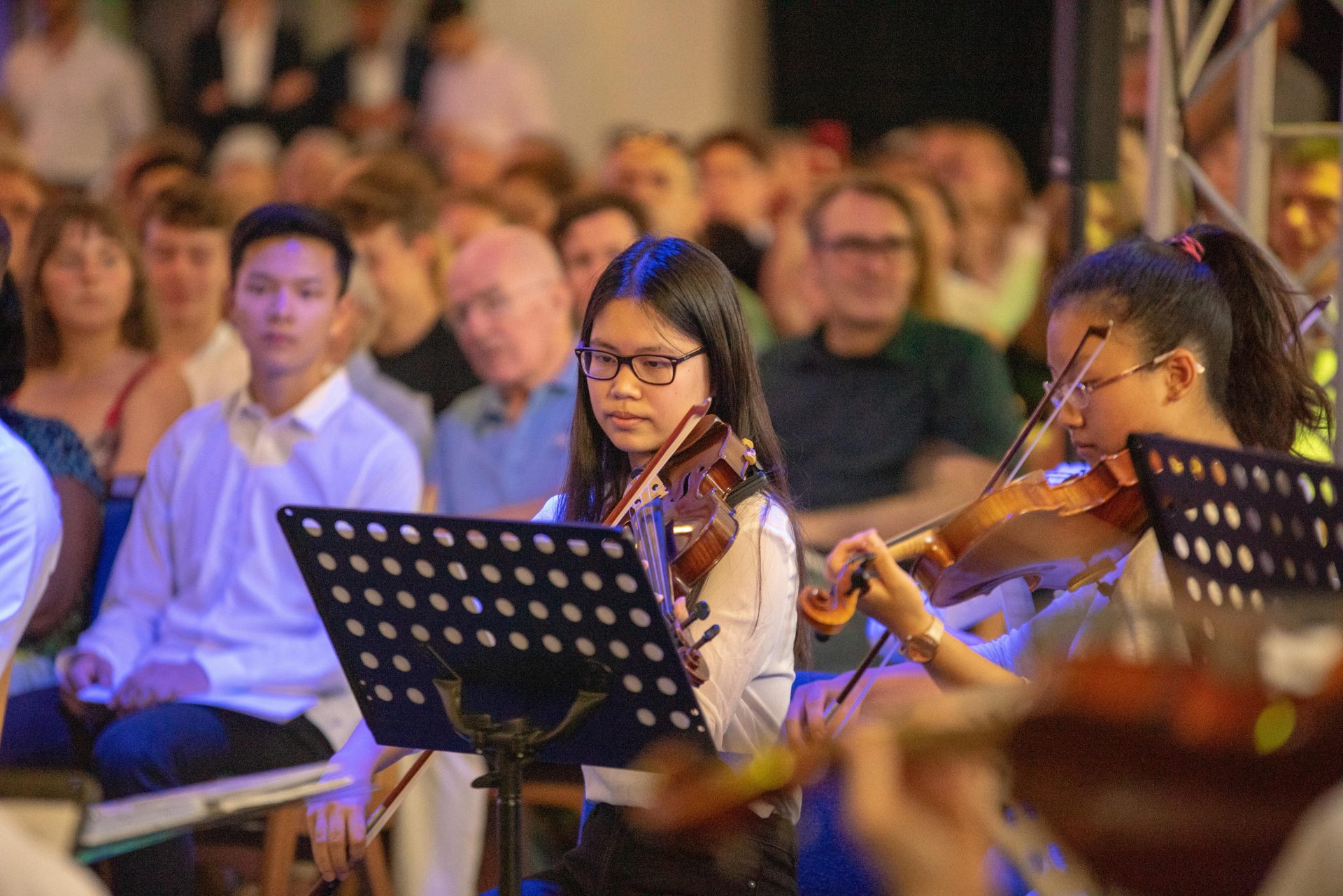 Den musikalischen Rahmen bildeten auf besonders festliche Weise die Schülerinnen und Schüler des Maria-Wächtler-Gymnasiums: das Orchester unter Leitung von Frau Möllering, Philip Ngyuen und Theodor Teslia an Klavier und Querflöte, Omar Abed und Inga Krähe an Geige und Klavier, das Trio Omar Abed (Geige), Emma Kopetzki (Cello) und Jiaqi Peng (Klavier) sowie Jiaqi Peng und Inga Schöyen am Klavier.
